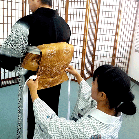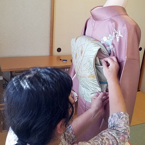 着せ方・帯結び | 着せ方・お太鼓結び(手結び) | 着物一式・枕・名古屋帯 |