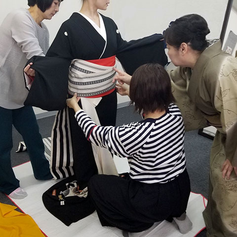 この講習では時代衣装の着装〔江戸芸者・京芸妓・舞妓〕を学んで頂きます。 芸者と異なる特徴のある京芸妓、だらりの帯から結びあげる舞妓の着装、さらに、きものの歴史をご理解していただくようにご指導いたします。時代衣裳の知識や技術を学ぶことは、現代の着付けを学んでいく上で大切な体験となります。 講習修了時には、国内、国外でのイベントで国際交流などの文化交流に役立たせることができます。