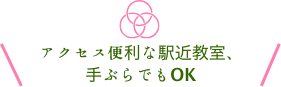 生活圏内で便利なロケーション。仕事帰りに手ぶらで通えるレンタルパックなど、ラクラクおケイコを応援します。
