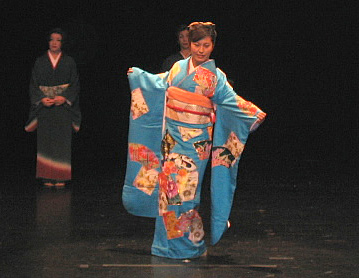 もっとも舞台上で着装するわけではないのでその点での気軽さはありましたが、モデルさんの美しさに助けられ着付けするのが本当にうれしく、楽しんでできました。それよりも急遽抜擢された幕引き係りの方も緊張し、いっぱい冷や汗をかきました。(友田久江)