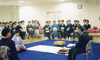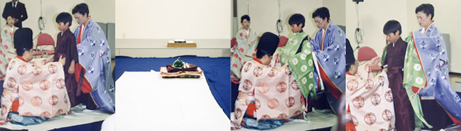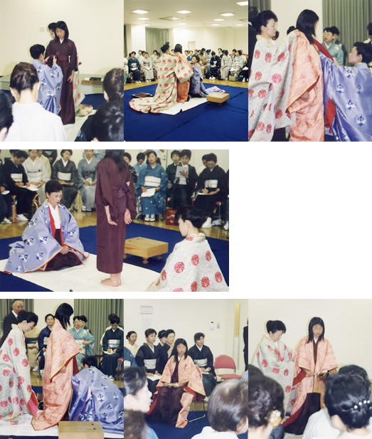 平成17年7月8日ホテル日航会議室内にて、衣紋道高倉流宗会頭仙石宗久氏をお招き致しまして「高倉流衣紋道 七五三と着袴の儀」の講習会を執り行いました。