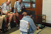 また、茶道のお手伝いもさせていただきました。琴の調べの中でお抹茶をいただくという空間は人々に和の文化を体感していただけることと、暑い夏の疲れもひと時ではあるかと思いますが少しは癒しになればと思い、一生懸命にお茶をお出ししました。来て頂いた方はとてもめずらしく感じられた様子でとても興味深く熱心にみていました。