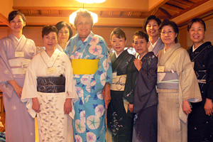 私は、世界各国から今大会に来られた方に、日本の文化に触れ大阪の空気に親しんでいただけたらと大阪観光・文化体験コースのお手伝いに参加しました。暑い季節なので「浴衣」を女性の方に着ていただきました。着ていただいた方には大変喜んで頂き、ご自分の浴衣姿をカメラに収められている風景も見られました。暑い時期でしたので「浴衣」でしたが、「浴衣」も夏の風情を湛えた着物であり、諸外国の方に、たくさんある着物の中にこのような1枚もあるということをお見せできたのではないかと感じるとともに、十二単衣から浴衣まである着物の奥深さと日本の美を感じていただけたのではないでしょうか。