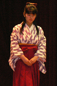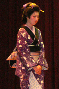 最初モデル役が決まった時もとまどったけれど、「路考(ろこう)」をするという事に決まって正直抵抗がありました。他の役と違ってかつらも大きく、着物も長くて、履物がなくて裸足だったり、顔から胸、背中まで白塗りしたので、人前に出るのが恥ずかしいというのが最初の印象でした。でもファッションショーに出て、みんなに「きれいだったよ」とか「すごく似合ってたよ」と言われ、すごくうれしかったです。また時代ごとの着物について、身をもって知ることが出来て、勉強になったので、やって良かったなと思います。