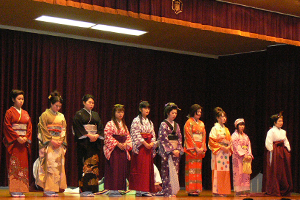 毎日当たり前のように、洋服を着用している現代において「きもの」を着る事は人生の節目にあたる時のみとなり高貴な存在になっています。決して身近なものではありませんが、日本の文化として育まれた「きもの」を学生自身が身をもって体感できました。普段、机上の学習が多いため、ショー形式で学習し得たことは学生にとって非常に良い経験となりました。ありがとうございます。