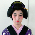 まず桃山時代の着物ってどんなの!?って感じでした。絵を見ても帯をしていないし、髪型もよくわからなくて不安でした。完成したのはイメージと全く違っていました。大きなおだんごのような髪型にオレンジ色の着物で可愛かったです。だけど、帯が細いし、中にもいろいろ着ているから結構食い込んで苦しかったです。