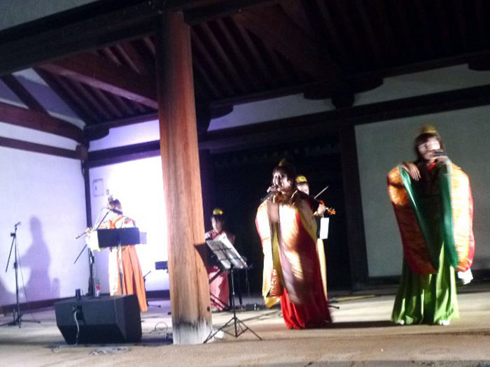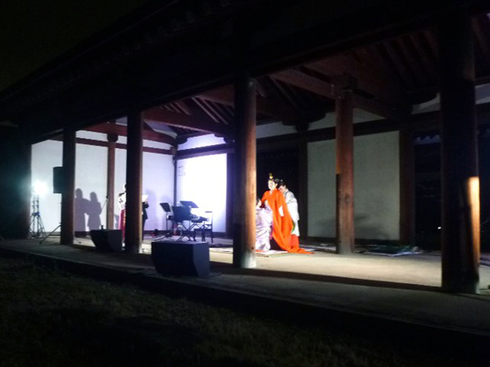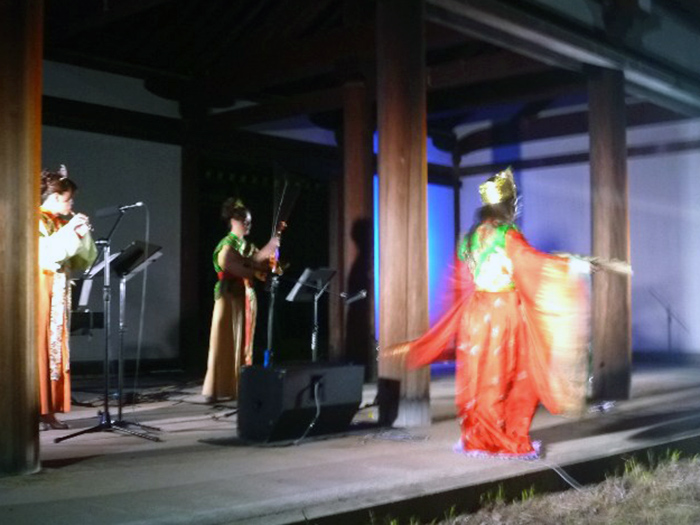 主催:平城宮発見!プロジェクト 協力:奈良文化財研究所・二絃の会・芸能文化を伝承する会・NPO法人日本文化普及協会 平成28年10月16日(日)平城宮跡、宮内内にて平城宮発見!プロジェクト主催の『平城宮跡フルムーンコンサート』~光明皇后と孝謙・称徳天皇 母娘ものがたり~イベント内にて十二単の着装披露をして参りました。 二絃のお琴・三味線・尺八・ヴァイオリン・フルート・ピアノの演奏ではじまり「光明皇后と孝謙・称徳天皇 母娘ものがたり」の対談、十二単の着装披露、『阿倍内親王の思い』の語りと大和歌での締めくくりとなり、皆様雅な一時を堪能されたご様子でした。