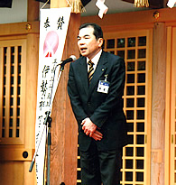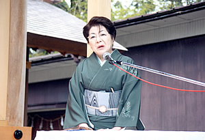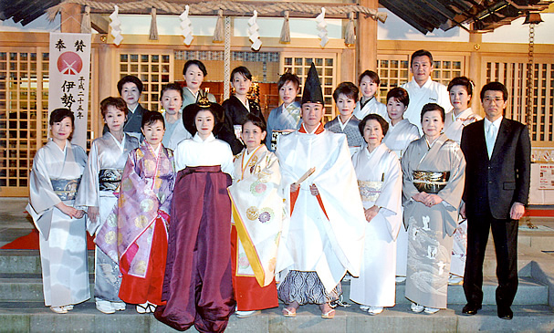 第1回『華まつり』に寄せて 桜満開の境内で、十二単の華やかさが一段と美しく、花見でお集りの皆さんも思いがけない平安絵巻に魅了されていました。 神職が衣服を改め装束を着用するのは特別なときです。装束をつけて威儀を正し神前でお祭りをする姿に参拝者はいいようのない感動と深い感銘を受けられます。しかし神職の不心得から装束を正しく着れなかったとしたら、神様も、そこに居合わす人もどう思われるでしょう。 中国の春秋時代に著された『管子』の中に、「衣冠正しからざれば、則ち賓者粛まず」とあるように、神職である私たちにとっては決して忘れてはならない大切な一言があります。 それほど私たちにとっても『衣紋』は重要なものです。 今まさにその目標に向かって歩んでおられる皆様が、日本の永い伝統と技を引き継がれ、広く活動されていることに心から感謝申し上げますとともに、今回当社がそのお手伝いが出来ましたことを嬉しく思います。 これからも日本人に美意識を高め、自国の素晴らしい伝統文化をより多くの方に広めるため、更なるご活躍をお祈り申し上げます。