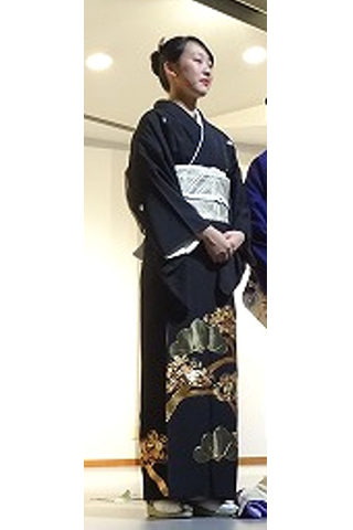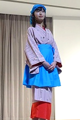 “欠席した子の代理で短裳を体験させていただきました。はじめ、着物のモデルに応募しようかと迷っていましたが、着る機会ができたので嬉しい気持ちでした。短裳は比較的身分が少し低い人の着物なのかな? と思いましたが、それがかえって目立ちました。 頭のかぶりものがとても印象的でした。一枚の大きなバンダナが着付師さんによって一瞬にして綺麗な帽子になりました。私の中で短裳は、元気で明るいお団子屋さんの女の子というイメージが浮かび上がりました。私は本番直前になって緊張するタイプなので、いざ着物ショーでステージの上に立って歩くと、姿勢を保つのに精一杯でした。 なので、着物の説明をよく聞き取ることができませんでした。でも自分の出番が終わった後で、着付けの先生が「ポージング上手だったよ」と褒めて下さいました。 このような滅多にない貴重な経験ができて本当に良かったです。見るのも、着るのも楽しむことができました。 代理に立候補した私はラッキーだったと思います。他の着物も着てみたいと思いましたが、短裳に愛着がわきました。ありがとうございました。”
