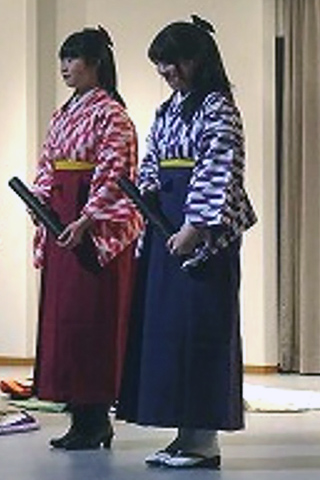 はじめて袴を着ました。着物の下にもう一枚着る感じで、着るのも時間がかかるんだなと思いました。下にブーツを履きました。袴の下にブーツを履くのは少し新鮮な感じがしました。髪の毛もやってもらってすごく嬉しかったです。袴姿の自分を見た時、タイムスリップしたような気がしました。舞台で歩く時は少し緊張しましたが、楽しかったです! 口紅みたいなのもつけてもらえて嬉しかったです!袴を着せてくれた方にも、とても親切に接していただけて、とても嬉しかったです。自分も着付けをできるようになりたいと思いました。大人になったら習ってみたいと思います。海外に行った時とかにコミュニケーションをとるのに役立つと思うからです。とっても楽しかったです! ありがとうございました。
