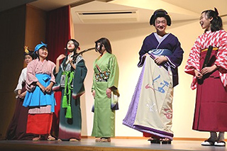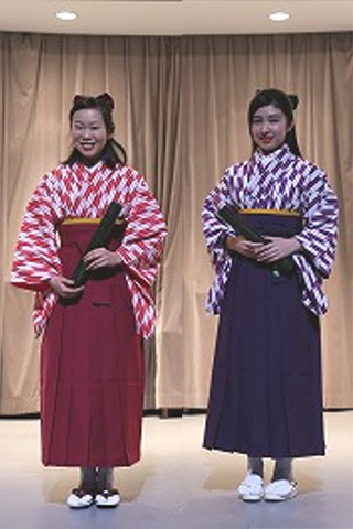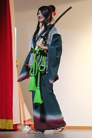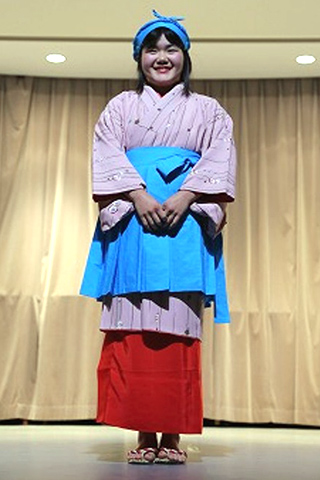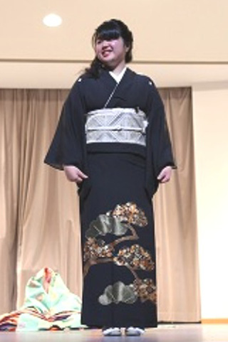 “なかなか着ることのできない着物を着て、大勢の人の前に立つという貴重な経験をさせていただき、見ているだけではわからないようなところも実感することができました。もう少しゆっくりと他の着物の説明を聞きたかったという気持ちもありますが、人前で緊張しながら歴史を学ぶことができて、本当に楽しかったし嬉しかったです。また機会があれば是非体験させていただきたいです。今回は本当にありがとうございました。”