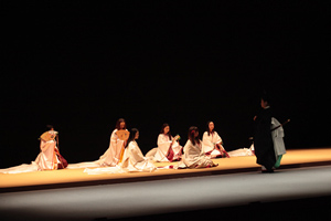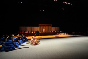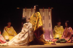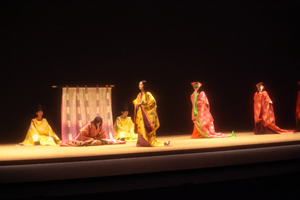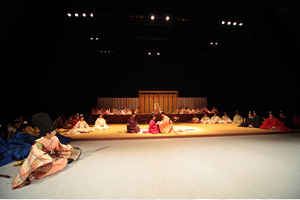 世界中で親しまれている「源氏物語」の絢爛優雅な世界が、壮大なスケールで現代に甦った「源氏物語/桐壺の巻」より、光源氏の元服の場面をイメージして、皇室・公家の成人式にあたる「加冠の儀」を平安時代の式次第に則って忠実に再現。儀式にふさわしい雅楽が演奏され、その出演者は総勢70人にもおよぶ華やかなステージでした。