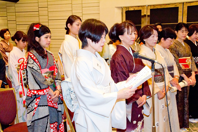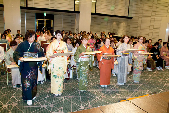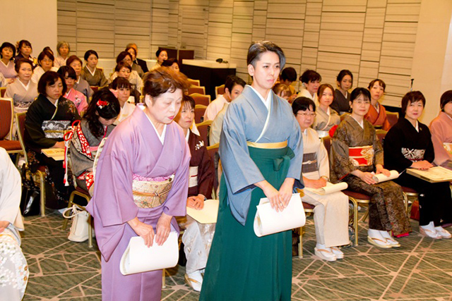 初めて授与式に参加させて頂きました認定証を頂き新たな気持ちで今まで以上に着物と向き合って行きたいと思いました。