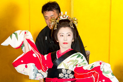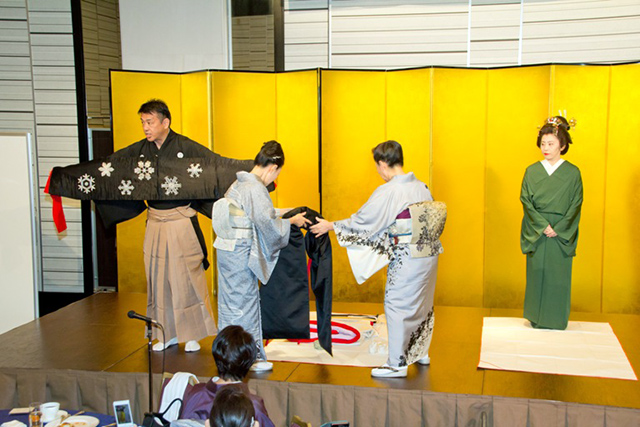 理事長、副理事長による着装及び、プロの後見さんによる引き抜き技術を実演して頂きました。