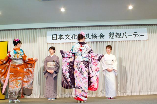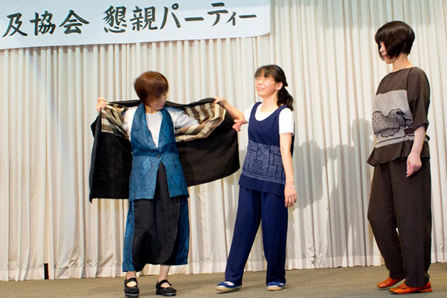 洋服は着物地を仕立てられ着用されており、普段着から正礼装までの洋服と着物の違いをファッションショーを交えながらおもしろおかしくご説明頂きました。