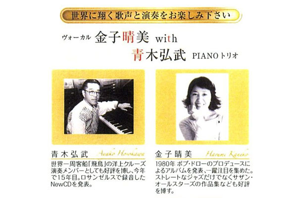 ありがたいご講話のあとは、金子晴美 with 青木弘武 PIANOトリオによるジャズコンサートを堪能しました。